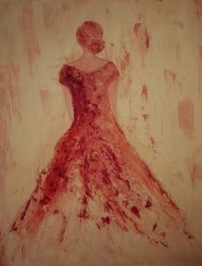 Lo scorgerete in “Serenità dell’anima”. Paesaggi, radure e orizzonti ci vengono incontro con la loro potenza, mentre l’unico essere umano vive solitario nel quadro “IO”. Posta di spalle, il lungo vestito a strascico rosso come la passione, come il fuoco e l’ardore, ma anche come la sofferenza che, come in tutti gli esseri umani, offusca alcuni momenti della nostra vita.