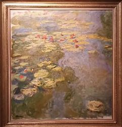 Nel 1980 Monet diventa proprietario di una casa a Giverny; qui allestì il suo primo atelier e l’ultima residenza, attorno alla quale crea un giardino tanto bello da sembrare un dipinto vivente. (E’ questo un soggetto che dipingerà fino alla morte). Qui, con cura quasi maniacale, costituisce una sorta di microcosmo dove è presente tutto ciò che ama di più, anche gli stagni dove coltiva le amate ninfee, che racconterà in oltre duecento opere e differenti formati (alcuni lavori superano i 2 metri). Si legge che Monet in questo periodo dipinga come in preda a una sorta di delirio creativo, fino a 10-15 tele alla volta, non esitando a distruggerle se, nel corso della lavorazione, le condizioni di tempo e di luce non sono esattamente le stesse del giorno prima. Queste opere segnano il suo culmine creativo ed espressivo. Si tratta dell’ultimo di una serie di esperimenti con cui porta alle estreme conseguenze i presupposti dell’Impressionismo. L’artista, riferendosi a questo soggetto, descrive così l’essenza della sua arte: