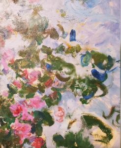 … Quella luce, che per tutta la vita ha animato l’opera di Monet, viene alterata dalla malattia agli occhi sopraggiunta negli ultimi anni portando nella tavolozza del maestro nuove sfumature, e tonalità. Sono colori più intimi ed espressivi che dilatano le forme. Un altro Monet o meglio una fase che ancora una volta qualcuno si permette di giudicare come di “decadenza senile”. Dopo anni, intorno al 1950, con le nuove correnti dell’Astrattismo e dell’Espressionismo astratto, finalmente è stato possibile smentire quella “cattiveria” e collocare Monet oltre l’Impressionismo. Quel momento infatti ha rappresentato un collegamento tra gli ultimi decenni dell’ottocento e le esperienze contemporanee.