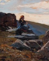 Meditazione, 1897 (partic.)rappresentando uomini e donne al lavoro come in Scena campestre o il condannato del 1892 o l'intenso Luci crepuscolari del 1888, debitore della lezione di Antonio Fontanesi.