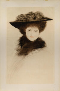 Paul César Helleu (1859–1927) è stato un pittore e incisore francese della Belle Époque, noto soprattutto per i suoi ritratti di donne eleganti e sofisticate, spesso dell’alta società. Il suo stile si è sempre distinto per l’uso di linee fluide e delicate, con una particolare attenzione ai dettagli dei volti, dei capelli e dell’abbigliamento delle sue modelle. Nella sua arte Helleu riusciva a catturare l’essenza e la grazia femminile, utilizzando colori tenui e giochi di luce. I suoi ritratti trasmettono, ancora oggi, un senso di raffinatezza e intimità, con una grande attenzione ai dettagli e una forte sensibilità estetica.