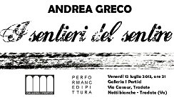 Gli elementi di base della vita, la terra e i suoi mille colori, la sua aridità quanto il suo gioire. Gli episodi più tristi della vita, o meglio, la sofferenza, la morte. La poesia, la letteratura classica, Eros e Thanatos, Orfeo ed Euridice. La scelta pittorica di Greco racchiude tutto questo, a noi saperlo ricercare. Non più un dejà vu, ma bensì una continua ricerca che dalle basi informali tende la mano ad elementi che mai hanno convissuto in simbiosi tra loro all'interno di un'opera pittorica. Fondi lievi e tonalità naturali che si scontrano con il gesto più furioso, incontro di elementi differenti per la ricerca comune di un universo metafisico e poi il nulla… Apprezzo la ricerca, Valore pittorico sempre più raro. Elogio al segno? Elogio a te Andrea Greco".