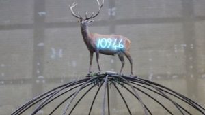 mai realizzato per un contesto museale, al quale per identiche dimensioni fa da controcanto “Sena titolo” (doppio igloo di Porto) del 1998, caratterizzato dalla presenza di un cervo sulla sommità dell’opera. Negli oltre quarant’anni che hanno contraddistinto la ricerca di Merz, le forme degli igloo hanno assunto differenti modulazioni dettate ogni volta dall’utilizzo di elementi di eterogenea natura.