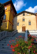 Una veduta del Castello Melzi di TradateDa fortezza a villa – Il Castello Pusterla Melzi è situato nella parte alta del borgo, in posizione dominante. D'origine medievale, ha subito nel corso dei secoli numerosi rimaneggiamenti. Dell'iniziale periodo, quando svolgeva ancora funzioni difensive, restano soltanto le mura esterne (oggi visibili da via Melzi), una torre e un salone con volte a crociera; infatti, già nel XVI secolo vennero costruiti edifici residenziali che gli conferirono l'aspetto di un palazzo rinascimentale, più che di una fortezza difensiva. Parte del palazzo rinascimentale, tra cui un'alta torre d'osservazione e gli edifici posti a sud della Chiesa di S. Maria in Castello, vennero purtroppo abbattuti negli anni Sessanta del secolo scorso in quanto divenuti pericolanti; al loro posto è stato costruito un edificio che ospita l'istituto scolastico.