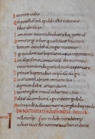 Una pagina del codiceUn tesoro ora accessibile a tutti – A cura di Norberto Valli è un saggio sulle Litanie triduane, mentre Paolo Crippa ha indagato la misteriosa scritta in caratteri greci del frontespizio. Conclude il volume un capitolo di Bertolli sulla vicenda storica del Codice: il passaggio da Milano, dove è stato prodotto nel IX secolo ed utilizzato per alcuni decenni o forse anche alcuni secoli, a Olgiate Olona e, infine a Busto Arsizio, quando la città si guadagnò, su volere di Carlo Borromeo, il trasferimento delle dignità plebane, a cui seguì la ricostruzione della chiesa di San Giovanni a partire dal 1609. Il volume si presenta in una veste ben curata, segno inconfondibile delle edizioni Nomos, ma al contempo di facile consultazione, anche per un pubblico non esperto in materia, evitando citazioni complesse e sigle di conoscenza settoriale. Ad arricchire questa perfetta panoramica è, inoltre, una nutrita serie di immagini a colori che riproducono alcune pagine del Codice. Da oggi, dunque, sarà possibile a tutti gli appassionati della materia scoprire tutti i segreti che questo tesoro dell'altomedioevo racchiude e che, con immenso vanto, la città di Busto Arsizio possiede.