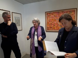 La piccola esposizione mostra i tratti significativi di questa figura poliedrica: traspare infatti l’artista, sia figurativo – con una veduta di rovine del Foro romano tracciata con delle pennellate da grafico- che astratto -con la tempera di Venezia – dove in entrambi il colore è parte integrante delle architetture, completate dall’incisione Vaso di fiori e dai due dipinti delle marionette.