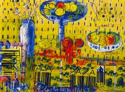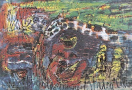 Nello sviluppo degli ultimi due decenni, irrompe sulle sue tele una messa in scena ostile e ironica, grottesca e drammatica della realtà che viviamo e 'World diary' è ciclo di lavoro che si confronta con un'attualità mediatica di conflitti e belligeranze.