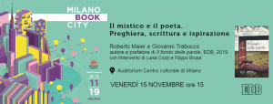 Poetando esce dagli studi televisivi di Rete 55 per recarsi nel cuore di Bookcity 2019; tra il Duomo e San Babila si nasconde il Centro Culturale Milanese che, in occasione di Boockity 2019, ospita il nuovo libro del teologo Roberto Maier, edizioni Dehoniane Bologna, Il fondo delle parole. Poesia ed esperienza spirituale con un contributo del teologo Giovanni Trabucco e un’incursione del giornalista e Direttore di Arte Varese Filippo Brusa.