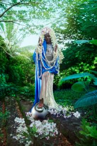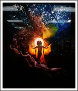Uomini dalla pelle blu, transessuali, ermafroditi, donne androgine con l’aureola e dalla sensualità conturbante. Un nuovo mondo è nato, intrigante, seducente, che lega l’iconografia cristiana all’esaltazione di una natura senza peccato. La nudità diventa immagine mistica che annienta la perversione ed arriva al mistero della vita.