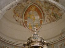 Gli affreschi nel catino absidaleinfine, sul lato sinistro della stessa finestra ci sono una Madonna in trono con Bambino e S. Pietro.