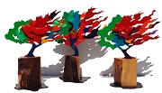Con questo materiale l'autore costruisce complesse sovrapposizioni di strati lignei e colori, forme e immagini di una memoria storica. La stratificazione di materia conduce ad una percepita bidimensionalita' che dalla calma iniziale sprigiona nel suo divenire un vibrante dinamismo. Le immagini di Brevi "futuristicamente" sviluppano un vorticoso movimento in un concetto di "eterno ritorno" e sfruttano precari equilibri di pieni e vuoti, di luci ed ombre, nel perenne bilanciamento di contemplazione e di forza vitale.