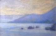 Dallo stile delicato, con predominanza delle tinte pastello e dei toni leggeri, Pareschi riesce a cogliere con maestria lo spirito motile e leggiadro delle acque del lago.
