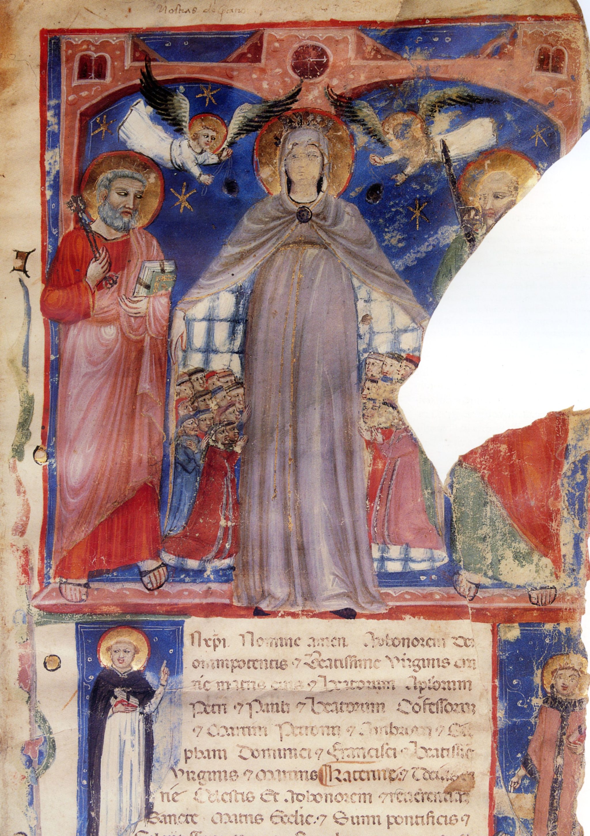 La Madonna della Misericordia con i santi Pietro e Paolo, frontespizio della Matricola della Compagnia dei Lombardi, 1334 (particolare)