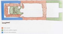 Fasi dell'edificioperimetrali. Interessante è una tomba a cassa rettangolare intonacata, con riciclo nella struttura di resti architettonici, tipologia presente in tutto l'arco alpino dal V secolo d.C. e diffusa in epoca longobarda.