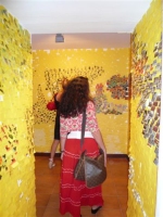 Le foto dell'installazione non rendono giustizia alla percezione inebriante e sinestetica che si ha entrando in questo ready-made di camera d'albergo: come accade all'interno delle architetture bizantine rivestite di mosaici anche qui il disegno e la definizione dei muri, degli spigoli e delle masse si frammenta, si sfuma, si fonde e si con-fonde tra le migliaia di foglietti gialli e variamente colorati, tagliati e modificati dagli artisti, la luminosità è ora diffusa ora improvvisa e abbagliante, assolutamente veneziana, il percorso tra queste pareti diviene instabile, disorientante nonostante l'esiguità dello spazio: troppo colore, troppa luce, troppe immagini, scritte, ricordi, oggetti d'affezione….