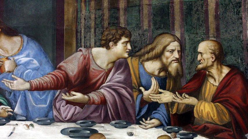 Leonardo fissa l’attimo in cui Gesù dice: «In verità, in verità io vi dico: uno di voi mi tradirà» e mostra la reazione degli apostoli, in una visione d’insieme molto dinamica. I personaggi della scena non sono ieratici, statici, come accadeva nella tradizione pittorica precedente. Mostrano l’istintiva reazione a quanto dice il Signore, la loro personalità e gestualità.