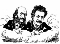 Caricatura di Offenbac e Strauss, titani dell'operetta
