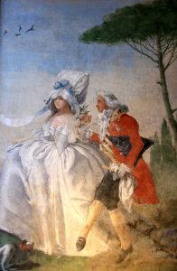 Di fronte al “Mondo Novo”, altre due opere significative: il “Minuetto in villa”, che colpisce per la sottolineatura ironica nei confronti delle formalità ridicole dell’epoca, degli aspetti caduchi delle mode e la “Passeggiata”, che pare raccontare un’uscita di scena, un commiato.