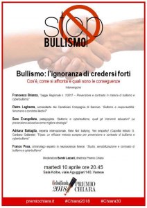 Varese – Martedì 10 aprile alle 20:45 il Premio Chiara apre gli incontri della Trentesima Edizione con un momento di valenza sociale dal titolo: ‘Bullismo: l’ignoranza di credersi forti’. Cos’è, come si affronta e quali sono le sue conseguenze.