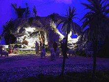 La sacra Natività è stata dunque ambientata in un contesto che ricorda il territorio brasiliano: ci sono palme e vegetazione tropicale, sabbie costiere, catene rocciose, e persino una superba cascata, con acqua corrente che salta da una sporgenza di quasi un metro d'altezza, tuffandosi in un laghetto circolare.