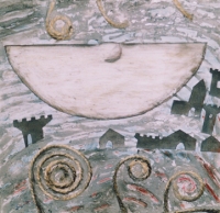 Opera di Vittorio PieroniTra sogno e realtà – Nell'arte di Vittorio Pieroni troviamo qualcosa di raro: il totale distacco dal mondo razionale in cui siamo immersi. Ammirando le sue opere entriamo in contatto con l'energia di un mondo ancestrale. Rimaniamo affascinati dai paesaggi onirici tipici del pittore. Quello che ci viene incontro con forza non è semplicemente la magia di un mondo da sogno fatto di accostamenti irreali, ma è la purezza primigenia che esprimono. A metà tra mondo surreale e mondo ingenuo dell'infanzia, la bellezza delle sue opere sta nelle forme e nei simboli che potentemente riecheggiano un passato che ci appartiene.