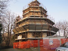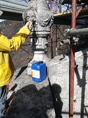 Tali lavori, iniziati da poco, hanno previsto prima di tutto la realizzazione di un ponteggio di servizio per il raggiungimento di tutte le superfici da trattare, sia in esterno sia in interno, garantendo così una prima fase di ricognizione e campionatura degli interventi previsti da progetto, volta a valutare accuratamente metodi e prodotti da utilizzare al fine di raggiungere l'intervento ritenuto più congruo e idoneo per la conservazione di questo bene, rispettando l'alto valore storico artistico e restituendo uniformità alla tessitura dei materiali e la corretta lettura decorativa delle superfici.