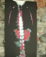 Radiografare la vita – Stesso senso hanno le immagini di radiografie impresse al piano terra: quello di mostrare le ossa, anche in questo caso non simbolo di morte ma struttura portante del corpo.