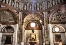 All'interno lo spazio si fa ottagonale, impostato su pilastri ad angolo rientrante che rinserrano altrettanti archi. Sulle diagonali del quadrato si aprono quattro nicchie angolari. La struttura è arricchita da un ampio presbiterio a pianta rettangolare. La cupola, a otto spicchi, è sostenuta da un tamburo ornato da una sequenza di nicchie con figure scolpite.