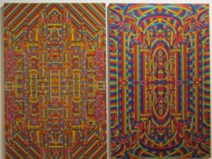 Vere architetture dell’infinito per un continuo speculare dove una linea mediana rende una metà simile all’altra tale da creare percorsi percettivi sia orizzontali che verticali.