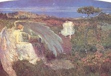 L'Amore alla fonte della vita, 1896Nuovi percorsi. La conferenza, oltre a illustrare grazie agli interventi di Ada Masoero e dei due curatori della mostra Fernando Mazzocca e Carlo Sisi le opere esposte a Padova, ha presentato al pubblico milanese il nuovo allestimento della Galleria d'Arte Moderna, nato proprio da una riflessione intorno al tema del Simbolismo e della "visibilità" di questa corrente all'interno del percorso di visita del museo. Come ha spiegato Paola Zatti, dedicando una sala monografica a Gaetano Previati ed esponendo nell'ultima sala le opere del Segantini simbolista, poste in dialogo con un dipinto di Pellizza Da Volpedo, due sculture di Bistolfi e un'opera di Alberto Martini in deposito dal Museo del Novecento, si è voluto sottolineare l'importanza di questa corrente e il suo essere "ponte" verso il nuovo secolo e quindi ideale collegamento con le opere esposte all'Arengario.