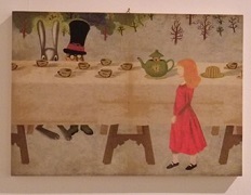 L'ideale liberatoria chiusura della mostra spetta ad una Alice fricchettona stravaccata su un divano con attorno una serie di tazze fumanti, il cui contenuto fa nascere più di una perplessità.