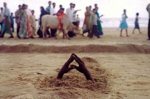 Pace e silenzio regnano nell’immagine del Maestro che ritrae la devozione di un santone a fronte della parete scolorita di un santuario; regnano pace e silenzio, la figura ripresa di spalle ispira l’idea di silente dialogo tra il mondo terreno e quello divino.
