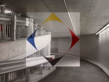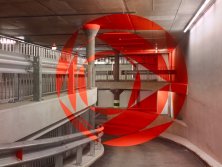 Cerchi, quadrati e triangoli si intersecano nello spazio per costruire delle geometrie colorate, delle entrate caleidoscopiche visibili solo da un determinato punto di vista. È questo l'effetto illusionistico creato dall'artista svizzero Felice Varini (Locarno, 1952) nell'autosilo di Lugano grazie all'uso dell'anamorfosi, un gioco prospettico già utilizzato nel Rinascimento per celare i significati alternativi di un'opera e oggi adoperato nelle segnalazioni stradali in modo tale che i caratteri deformati e allungati, visti da una determinata distanza, appaiano normali e leggibili. Attraverso l'uso di pittura, pellicole e gesso, Varini trasforma lo spazio urbano e architettonico in una vera e propria tela i cui limiti sono i muri, i guard-rail, le ringhiere, ovvero tutte quelle linee che in modo casuale e frammentario diventano parte integrante di questa invasione cromatica.