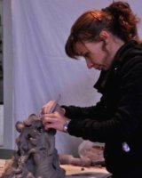 Elisabetta Pieroni nel suo studioMeglio la pittura o la scultura? Eterno dilemma che ha tolto il sonno a più di un artista e a qualche critico nel corso dei secoli. Ma Elisabetta Pieroni non ha dubbi di sorta e poterla osservare, mentre lavora ai suoi lavori in terracotta, lascia estasiati. Il suo amore per la materia si percepisce in ogni suo gesto. Lei, ammette ai nostri microfoni, ama toccare la terra, sentirsi un tutt'uno con l'opera che, piano piano, prende forma, dando concretezza alla sua creatività. I bassorilievi sono curati nei minimi dettagli e spesso rappresentano vedute di paesaggi e case attorniate da alberi.