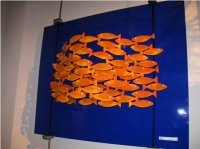 'Pesci fosforescenti', di DodoAnima che si rivela – Scultura, fotografia e pittura insieme per raccontare ciò che non è tangibile, quello che nasce dal profondo. Cinque personalità in mostra: Fabrizio Menotti in arte 'Dodo' e Gianmaria Viviani, scultori, Tommaso Fucile, fotografo, Valentina Campiglio e Maria Elena Danelli, pittrici. Quest'ultima racconta i suoi lavori, 'ritratti idealizzati, non presi dal vero, ma con un significato che parte dal profondo, esprimendosi attraverso gli occhi e giochi di luce. L'anima non è visibile, ma può esserlo attraverso una rappresentazione materiale di essa, cercando comunque di darle un volto leggero ed etereo. Ecco perchè la mia scelta di colori luminosi (come i due alberi che si intrecciano), oppure l'albero che nasce dalla divinità, o ancora quello ramificato che nasce dalla testa di un bambino'.