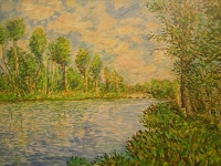 Amo molto l'acqua; la maggior parte dei paesaggi esposti in mostra sono infatti dedicati a questo elemento. Vi sono le spiagge della Sardegna, i fiumi e il lago. I riflessi delle luci che si sfaldano sull'acqua mi affascinano molto, da qui il titolo: luci e riflessi.