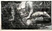 Un'altra opera di BonfantiViaggio nell'arte – Ma qual è dunque il viaggio di Bonfanti? Tra un'opera ispirata a Turner e le altre, invece, alle immense sculture del Partenone, iniziamo a comprendere che il viaggio di Bonfanti è un viaggio all'interno del mondo dell'arte stessa, dove i riferimenti alle grandi opere del passato non sono che un indizio del passaggio dell'artista in quel dato museo (il British Museum e il Museo del Partenone, in questo caso). L'attenzione dell'artista, infatti, non è rivolta alla riproduzione delle sculture classiche, ma piuttosto a quel vuoto che le circonda, "quel vuoto che ci circonda ed è spazio, come lo spazio vuoto che crea le forme delle opere d'arte". E il viaggiatore, gravido di idee sull'arte, interviene con il pensiero, che fluttua sovrapponendosi alle imponenti sculture. Le dimensioni davvero notevoli di questa serie dedicata al Partenone, insieme ad una potente figurazione espressionista, interamente giocata sul bianco e nero, rivelano un atteggiamento di carattere concettuale, che porta a riflettere sull' idea del sacro nel viaggio e nell'arte stessa.