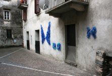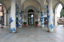 Si sono posate sulle colonne che sorreggono i portici del Palazzo di Città, sui muri delle case in Piazza VIII marzo e negli incantevoli spazi della Galleria Aglaia Arts and Craft, che è stata sede di un convento fino al 1500 per poi trasformarsi in osteria con camere, cuore della personale dal titolo "Luoghi Celesti".