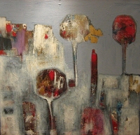 Un'altra opera dell'artistaDi sole e di azzurro – L'introduzione di questo azzurro avvolgente dà vita ad atmosfere nebulose, vagamente malinconiche, "di quel tipo di malinconia in cui amiamo crogiolarci" precisa Lidia, dove però l'elemento dell'oro è sempre presenta a rappresentare la luce che ci guida e ci consola. La tematica della solitudine è ricorrente, ma sembra appunto esprimere quella solitudine ricercata per riscoprire un po' se stessi. Alle superfici aggettanti, corpose, dense di substrati inconsci difficili da mettere a tacere, ora si sostituiscono delicate composizioni in cui la materia viene meno a favore di un colore decisamente alleggerito e in cui, come visioni, appaiono sagome in lontananza che vagano alla ricerca della felicità.