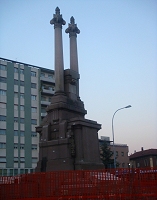 Un monumento orfano – Evidente in ogni caso è l'inizio dei lavori che riguardano il monumento, che all'inizio di questa settimana è rimasto orfano delle statue che lo componevano. La maestosa architettura commemorativa del 1924 appartiene al periodo celebrativo e formale dello scultore viggiutese Enrico Butti. Sul basamento di granito era visibile fino alla scorsa settimana un gruppo bronzeo raffigurante alcuni soldati, uno dei quali regge un caduto. Più in alto tra le due colonne erano posizionati due putti; mentre ai lati del basamento vi erano collocate due statue: una rappresenta un nudo maschile tratto dal gruppo "La tregua", l'altra una figura femminile chiaramente ispirata al lavoro.