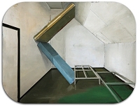 Un'opera di Aron ReyerSpazi teatrali – L'Islanda, uno degli ultimi paradisi terresti ancora parzialmente incontaminati. Il paese del Nord, dei ghiaggi e delle lande desolate, dell'aurora boreale, dei geyser, dei vulcani e del buio diurno. Una nazione meravigliosa dal punto di vista paesaggistico, ma ostile all'uomo. Difficile immaginare una vita in quel luogo così temprante, duro, dove la semplicità delle azioni si complica perchè il clima, quando cambia, blocca tutto e ci si trova costretti a fermarsi. Nella capitale dell'Islanda a Reykjavík, cresce un giovane artista, Aron Reyr Sverrisson, le sue opere saranno nella galleria varesina da sabato 31 maggio. La Duet Art ripone le fotografie e accoglie le tele, dipinti reali che trasmettono l'intensità della terra natia dell'artista. I suoi quadri ritraggono stanze solitarie, dove solo gli oggetti divengono protagonisti del luogo. Assente l'uomo. Dalle camere da letto minimali alle tristi periferie di sfondo, o di riflesso. Gioca coi dettagli Aron, inserisce specchi nei suoi dipinti per dare un'illusione di profondità e coinvolgere più spazi in uno solo. Scenografie che hanno suggerito anche il titolo stesso dell'esposizione: 'Il teatro del Silenzio'.