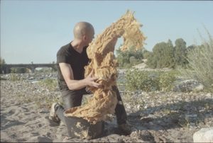 Il compimento dell’opera si basa su un equilibrio tra estremi dettato dal delta termico tra la fusione di frammenti di cera naturale e l’acqua corrente del fiume.