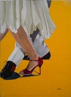 Una mostra "dettagliata" – Le sue opere dichiarano infatti una netta ispirazione fotografica, nel taglio spesso decentrato e nello scegliere come soggetti dei suoi quadri dettagli ingigantiti, come strappati dal flusso di un racconto. Così sulle pareti del locale le opere di Mari costituiscono un collages di fotogrammi iperrealistici, quasi a voler mettere insieme una nuova storia. Dalla composizione di fiori alla ballerina di danza classica ripresa con un'inquadratura alla Degas, le sue tele si distinguono per il tratto deciso nello stendere il colore, facendo così risaltare al massimo l'uso del chiaroscuro molto frequente nelle varie opere.