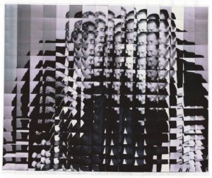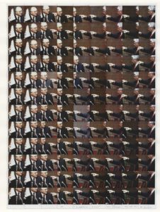 “Ogni opera di Galimberti – aggiunge Francesca Guerisoli – si fa dispositivo di una duplice azione. Da un lato, per l’artista è un meccanismo di rielaborazione, che nel reiterare il gesto di selezione, scomposizione, ingrandimento, riassemblaggio si confronta con i maggiori eventi storici e traumi collettivi. Dall’altro, nel ripresentare immagini-icone rinnovate dal suo gesto artistico, ribadisce la capacità di una fotografia di farsi immagine monumento”.