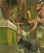 Un particolare del politticoAlcune brevi notizie – Non si conoscono gli estremi biografici di Michael Pacher, si ritiene soltanto che sia nato all'inizio degli anni Trenta del XV secolo a Novacella presso Bressanone e sia morto a Salisburgo nel 1498. Non sono molte nemmeno le notizie sicure; la maggior parte vengono ricavate da documentazione indiretta: fatture, contratti, ricevute.