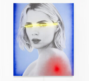 La luce, elemento tradizionalmente associato alla rivelazione, diventa così barriera e abbagliamento. Il neon illumina e allo stesso tempo acceca, evidenziando la natura artificiale dell’immagine e mettendo in discussione la dipendenza sociale dall’apparire. In questo cortocircuito tra visibilità e cecità, Martin invita lo spettatore a riflettere su cosa significhi davvero “vedere” in un’epoca di sovraesposizione permanente.