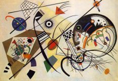 Breve biografia – Kandinskij nasce a Mosca nel 1866. Si dedica alla pittura sin dall'adolescenza, ma la vocazione gli si rivela al tempo della grande esposizione degli impressionisti francesi a Mosca nel 1895. Termina gli studi di diritto ed economia e, nel 1896, rinuncia alla cattedra per trasferirsi a Monaco, punto d'incontro delle avanguardie artistiche di quegli anni. Già in questo periodo, la sua attività è intensa: parallelamente egli elabora e annota le proprie riflessioni teoriche sulla necessità di una rottura con i canoni estetici e interpretativi tradizionali. Legato da amicizia a Franz Marc, fonda con lui a Monaco, nel 1911, il gruppo del Blaue Reiter.