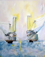 "Li considero metafora dell'uomo. Sono una sorta di immedesimazione dell'uomo, della finitezza di questo in opposizione all'infinito della natura. Visioni antropomorfe che nascono dal desiderio di rappresentare l'umanità ma senza l'utilizzo di figure. Altri sono i temi ricorrenti nelle mie opere: il tempo, la nostalgia, la bellezza… Mi piace giocare su questa presenza-assenza. Mi interessano molto i segni lasciati e spesso abbandonati dagli uomini. Odorano di tempo, raccontano vite in modo misterioso eppure coinvolgente. Una vasta parte della mia produzione è sempre stata il disegno come immediata annotazione dei frammenti di realtà circostante, come archivio di memorie. Spesso nei disegni la figura umana e l'autoritratto sono al centro dell'attenzione, in maniera completamente opposta alla pittura, dove invece l'uomo compare incarnandosi negli oggetti-relitto, ma mai direttamente".