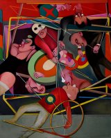 Chi muove i fili invisibili che fanno assumere all'indifeso Buz Baz goffe posture? Il diavolo, probabilmente. Ed il diavolo è lì ad attenderci, manifestandosi con ghigno divertito, in una sequenza di opere di grande formato, quale assoluto regista di un teatrino da lui animato.