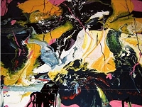 Un'opera in mostrainfatti, al suo espressionismo astratto di forte violenza gestuale, nessun farmaco esposto sugli scaffali può essere una panacea. Perché Anja è così: una personalità tormentata, volubile e fragile, ma anche fresca e genuina che esprime in maniera viscerale sulla tela le profondità dei suoi sentimenti. L'arte è l'unica vera "terapia" per Anja e di questo, visto i risultati, le siamo grati. Con un dripping brutale e denso sfoga le infinite contraddizioni del suo animo, che si materializza in grandi macchie di colori puri, ampie pennellate, scavi di materia e linee, da cui affiorano figure del passato, spiriti del futuro, uomini di oggi e, ovviamente, se stessa.